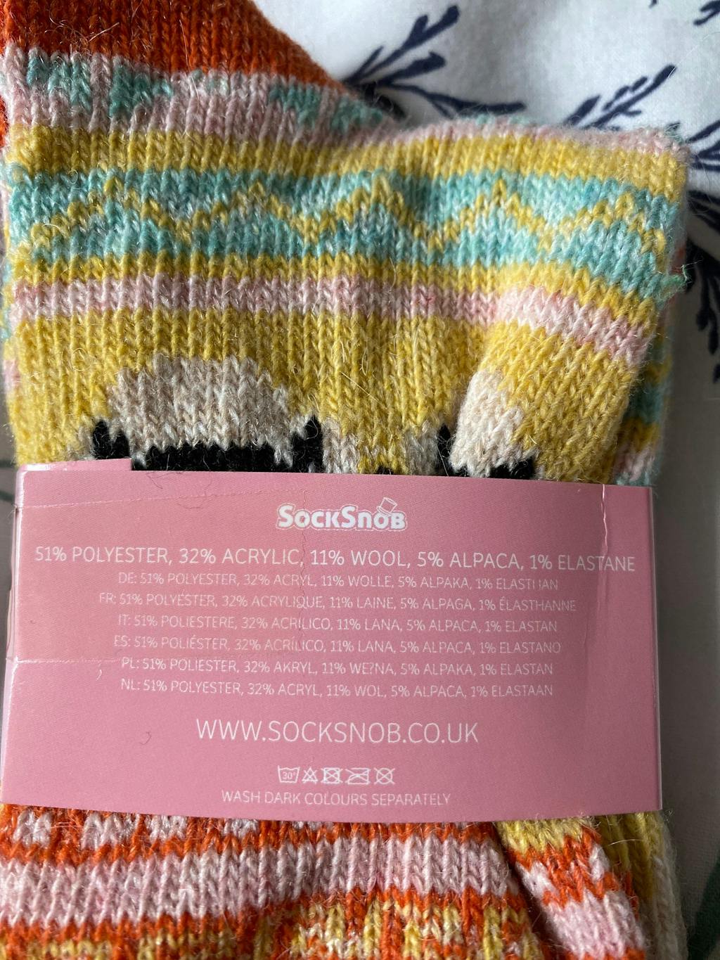 Sie sind in Damengrößen 4–7 (UK) erhältlich und werden in 6 Paaren/Farben pro Packung geliefert. Sie bestehen aus 51 % Polyester, 32 % Acryl, 11 % Wolle, 5 % Alpakawolle und 1 % Elastan und sind pflegeleicht in der Maschine waschbar.
